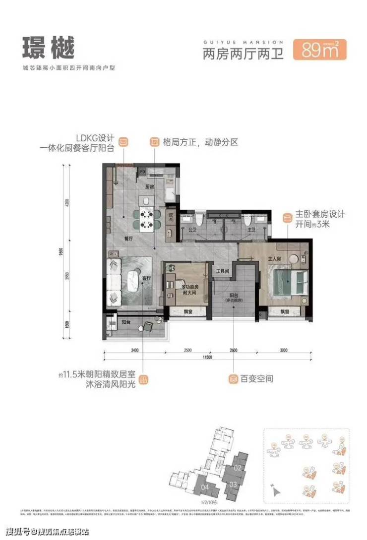 LDKG一体化:餐客一体中西双厨,促进家人情感交流与亲密体悟,次卧可打造成客厅
