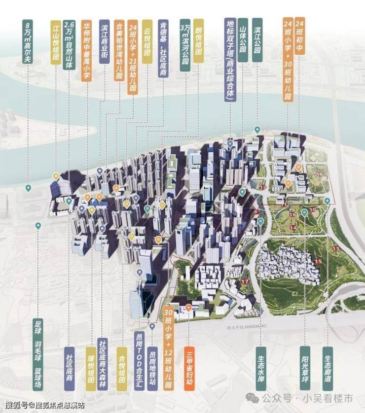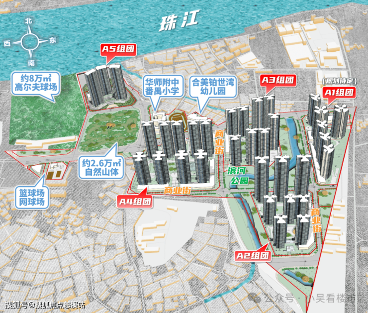 珠江铂世湾早期最大的卖点则是它的江景资源,现有约4.5公里的曼妙江岸线、8万㎡江山帝景高尔夫、3万㎡中轴滨河景观、约2.6万㎡自然山体与2大滨水公园。