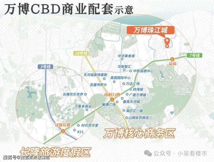大型商业商场类似的就要去到两公里处的万博了,万达广场、天河城、四海城....等大型购物中心都有,未来还会有万象系商业、K11进驻,可以说商业这方面完全不用过多担心。