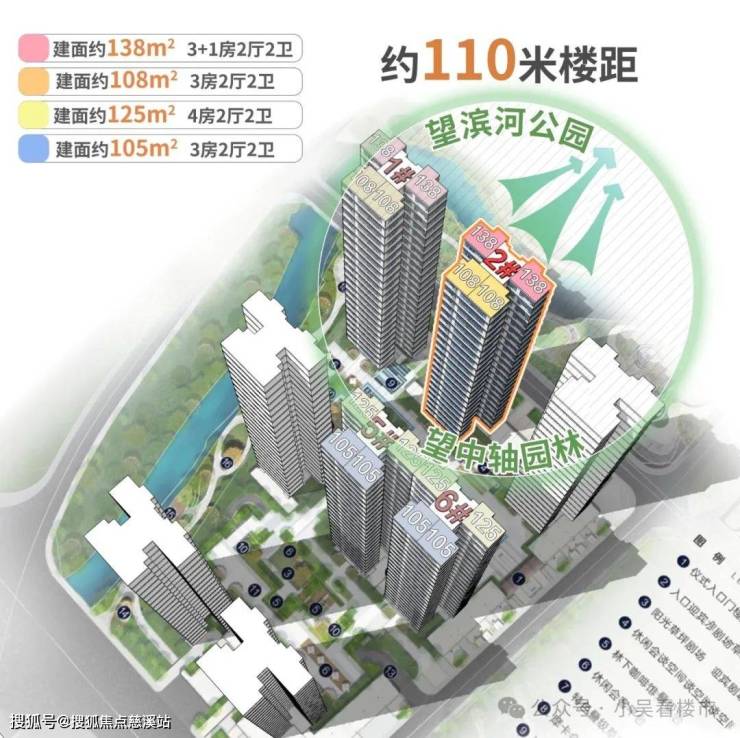 目前在售A2组团,主推1-2栋,皆为三梯四户,南向望小区花园,西北侧有3万方的滨河公园,前后超宽楼距,视野无遮挡。