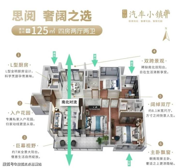 建面125平四房,南北对流,格局方正,全明设计,动静分离,超大景观阳台,约8.1米超大竖厅,7米双开南向阳台,主卧南向套房,总价260-320万左右。