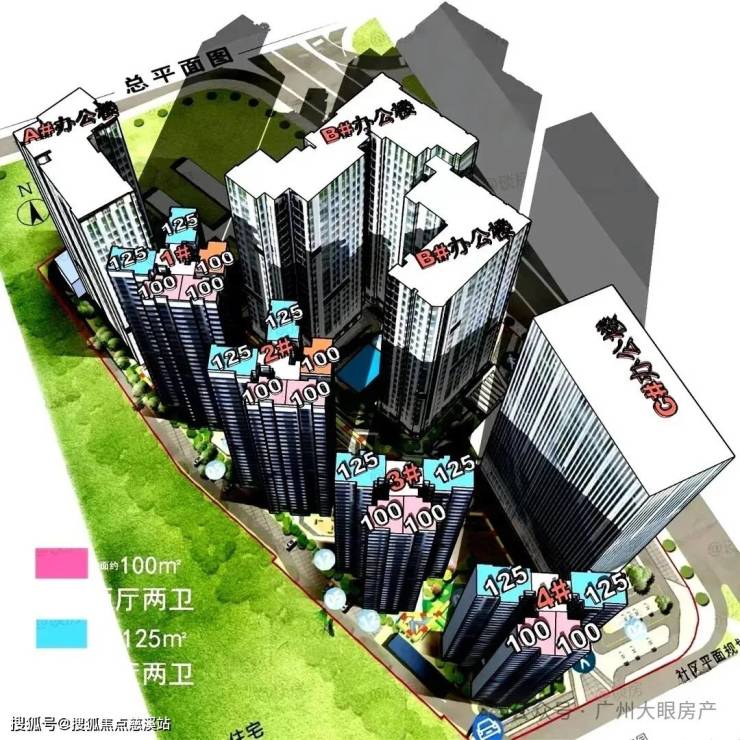 业态分布:1栋写字楼+2栋商办公寓+4栋住宅+建面约2000㎡商业