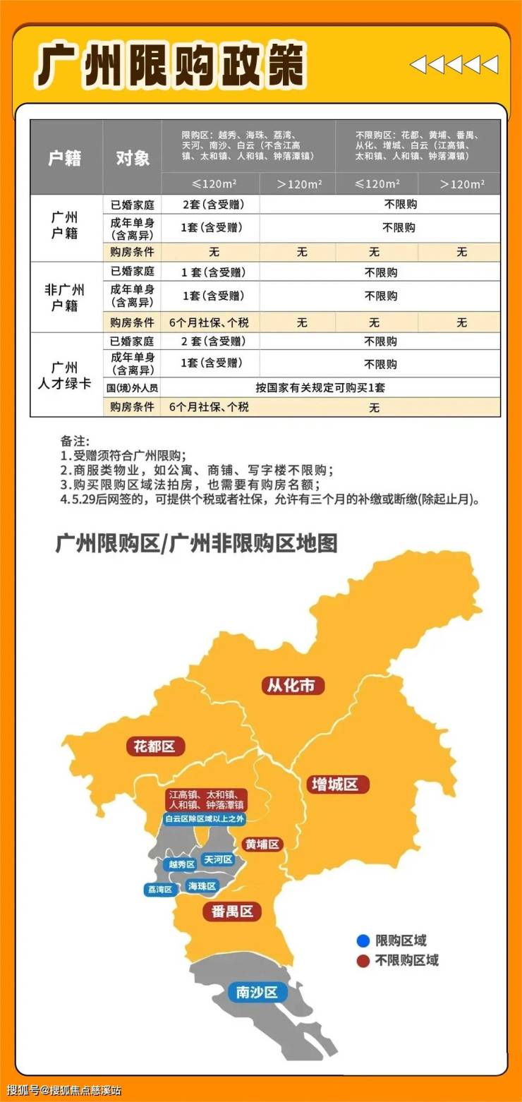 限购区:越秀、荔湾、天河、海珠、南沙、白云区(不含江高镇,太和镇,人和镇,钟落潭镇)
