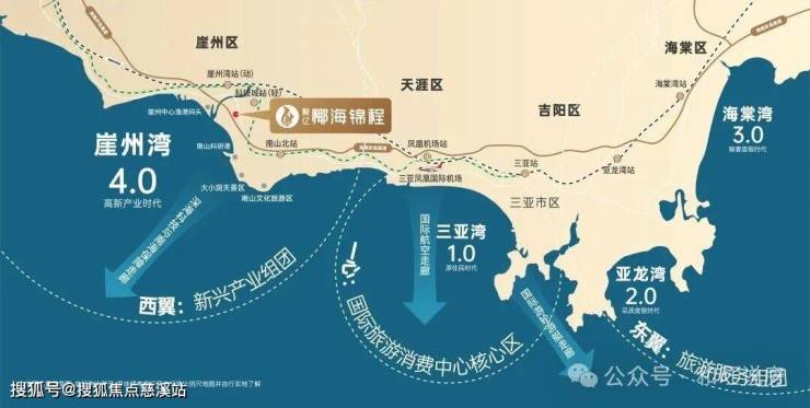 4.0 崖州湾时代(现在与未来):以崖州湾科技城为核心,驱动城市功能质变,致力于打造 “科技产业集聚区” 与 “南海服务保障功能区”,统筹三亚西部发展,带动区域经济增长