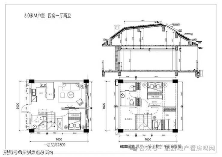 D2户型 :建面65㎡和75㎡,四层双折坡,实得81㎡—99㎡,2-3房2卫