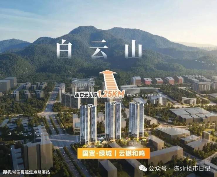 云樾和鸣项目东侧是白云山,直线距离大概1.25公里。都非超高层,3栋楼都是32层高,大概是22楼以上位置东南向高层能看白云山