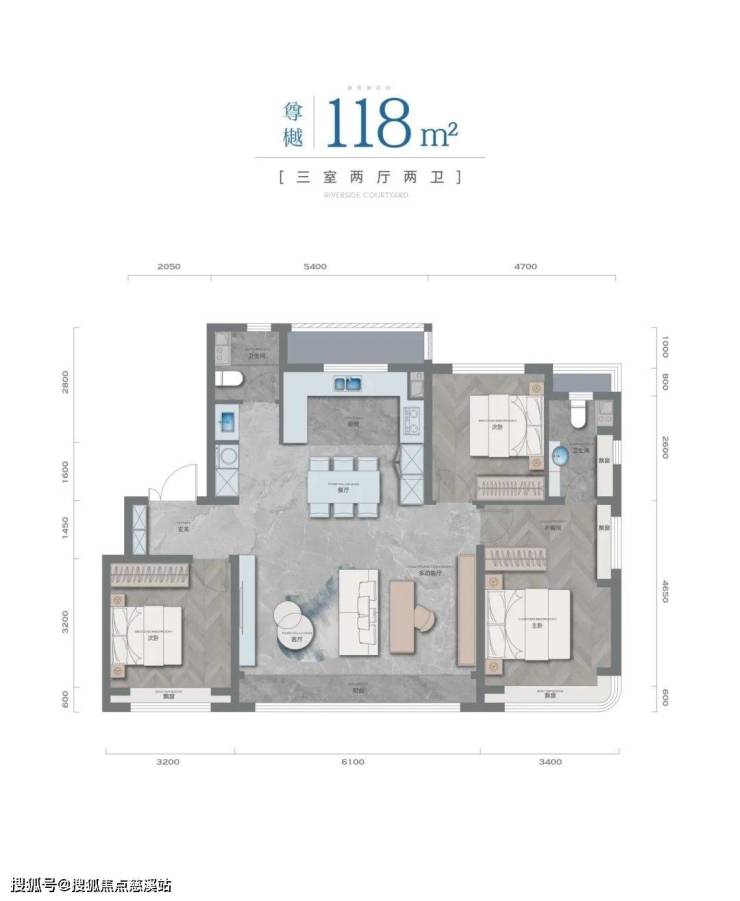户型上全部做三室两厅两卫,赠送面积较多,得房率高。