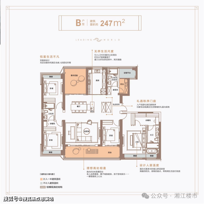- 247㎡四房:3.1米层高,南向约9米宽景阳台,将梅溪湖景框入生活;