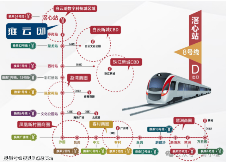 约600米地铁8号线滘心站,25分钟直达越秀/荔湾,45分钟畅达珠江新城,通勤高效无忧。1站换乘12号线,4站直达7轨枢纽白云站,快速连接大湾区,享枢纽发展红利。