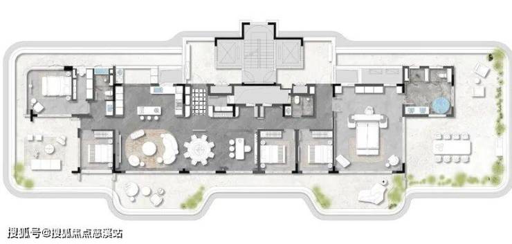 项目联袂三大顶级设计团队:建筑设计由上海联创执笔,以“超流体立面”呼应海浪肌理,通过悬挑阳台、底层架空消解建筑与水岸的边界,搭配270°观景阳台、云端泳池、环形瞰海露台等设计,实现河景、海景与生活空间的深度交融;园林设计出自奥雅设计之手,深度融入海岛度假基因,规划“森谷水庭-碧涟泽畔-水岸绿洲-雨林秘境”四大主题空间及约36m超尺度中央绿轴,以七幕式成长叙事动线,重构全龄化自然栖居体验;度假公共空间则由邱德光设计事务所打造,以蔚蓝泳池为视觉核心,构建地中海式社交氛围,涵盖恒温泳池、宴会厅等多元场域。