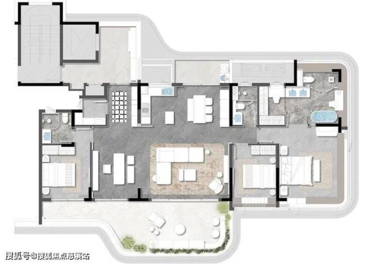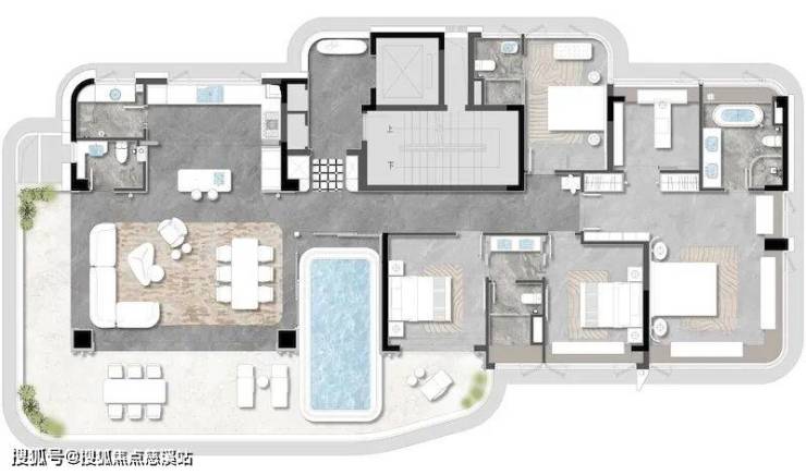 宸屿(约275㎡ 5+1室三厅四卫):旗舰级户型,极致空间尺度,5+1室满足多元功能需求,三厅设计适配高端社交与家庭欢聚,全明通透的格局搭配高奢精装,定义海岸高净值空间样本。