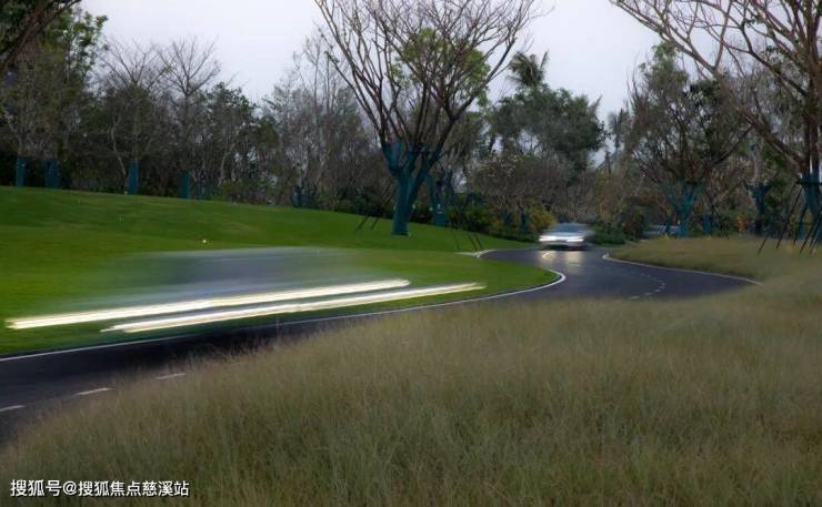 ▲随风起舞的芒草和草坪起伏舒缓的曲线