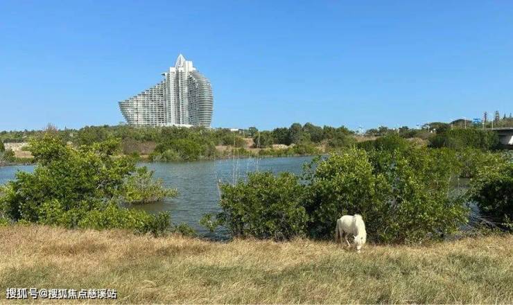 坐落于三亚5500亩海棠河生态公园基底之上的海棠悦府,拥有海、河双面景观视野。初次勘察现场时,一匹白马在岸边悠闲吃草,一排原生红树林沿着海棠河岸线绵延生长。