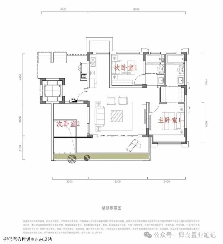 洋房户型2️⃣建面83—89 实得110,3房2卫格局