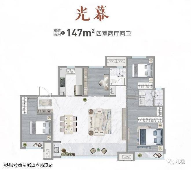 除此之外,小区内的主力户型147㎡户型,实用紧凑,可利用空间太夸张了,不但有7.45米大宽厅,还能做到四室两厅两卫的空间设计,餐客厅相连再加上7.45米宽的超大阳台,堪比现在市面上200左右的客厅空间。