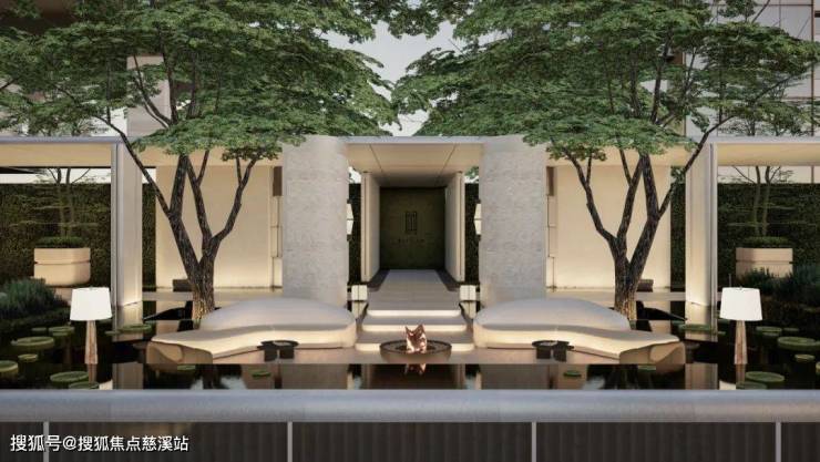 - 景观:JTL刘展设计400米归家动线,融合轴线对称树阵与下沉式会所。