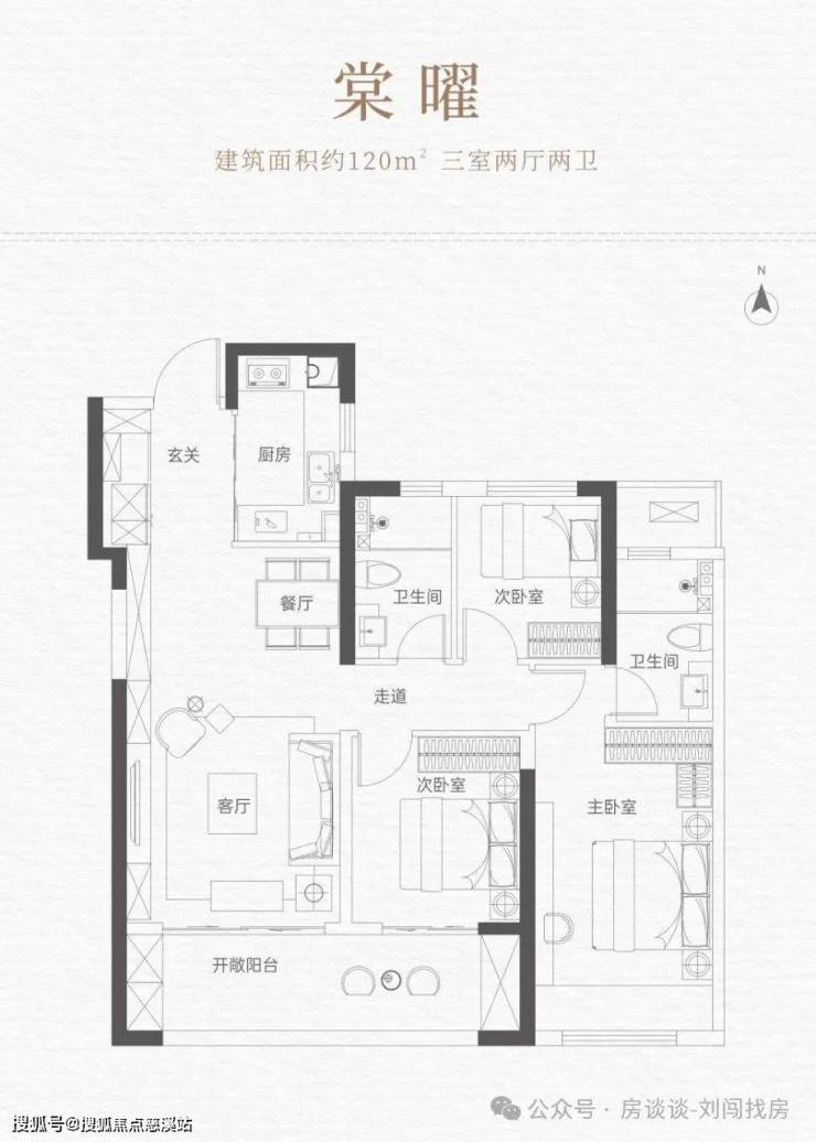 120㎡经典三房(三开间朝南、双卫设计)、