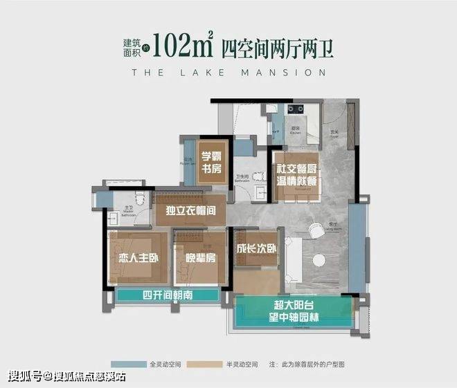 118㎡四房户型:设计堪称 “空间魔术师”,超 100% 使用率让每一寸面积极致利用,拥有南向巨幕观园阳台、主卧套房、独立书房、双卫配置等,满足三代同堂的奢适尺度。