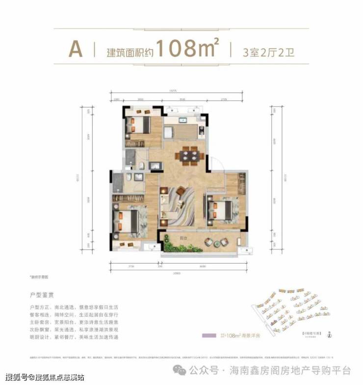 A户型 | 建面约108㎡三房两厅两卫