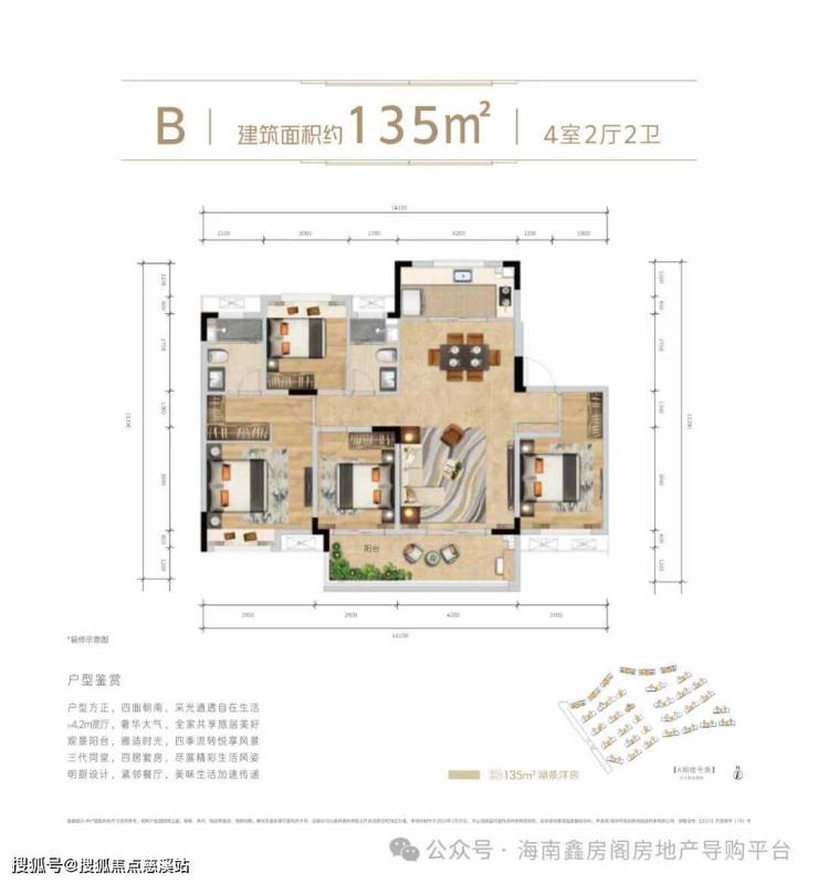 B户型 | 建面约135㎡四房两厅两卫