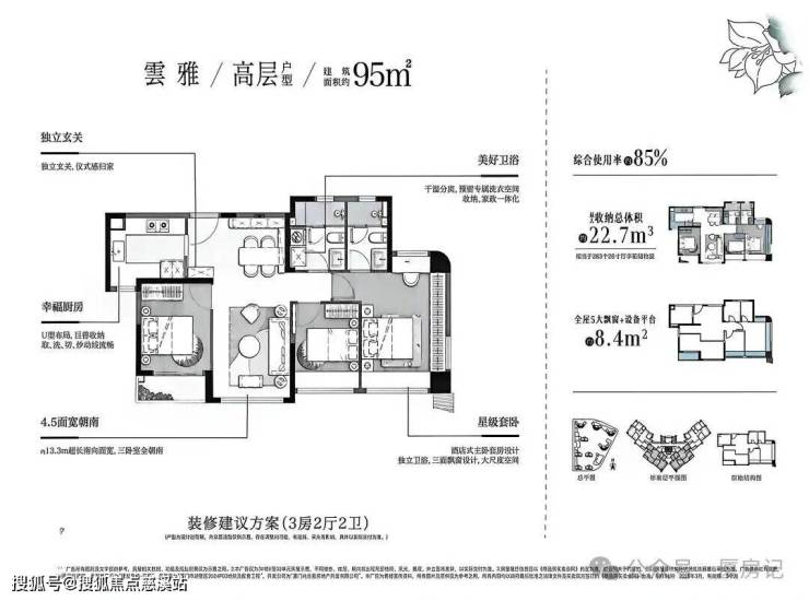 •95㎡高层为4.5开间朝南,空间感媲美传统109㎡户型