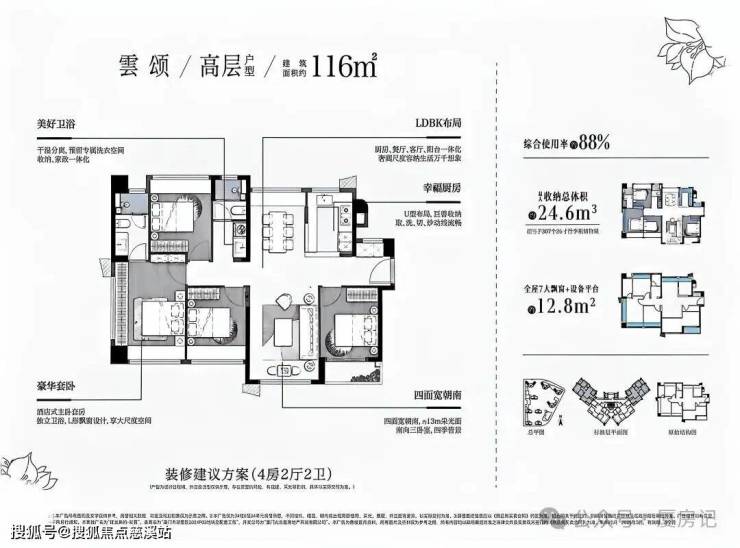 •116㎡高层为四面宽朝南,部分房源可瞰海景