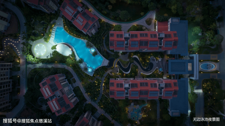 溪谷双园:依托自然地形地貌,打造社区园林与山体双园景观,将无边际泳池与叠水瀑布、溪流景观相连,呈现“飞檐叠瀑”“高山流水” 的灵动水系意境。