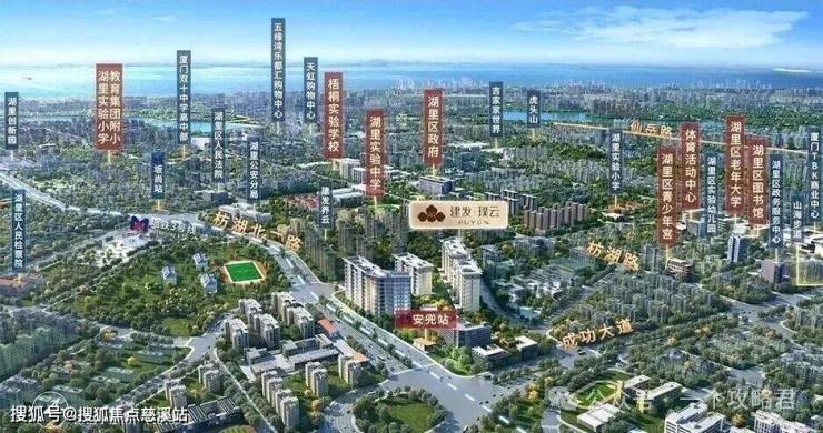 建发璞云恰好扎根湖里枋湖区府旁,这里不仅体制机构密集,周边圈层素养高,还聚集了湖里区行政服务中心、区政府及相关权力单位,方圆 1 公里内生活与政务配套一应俱全。