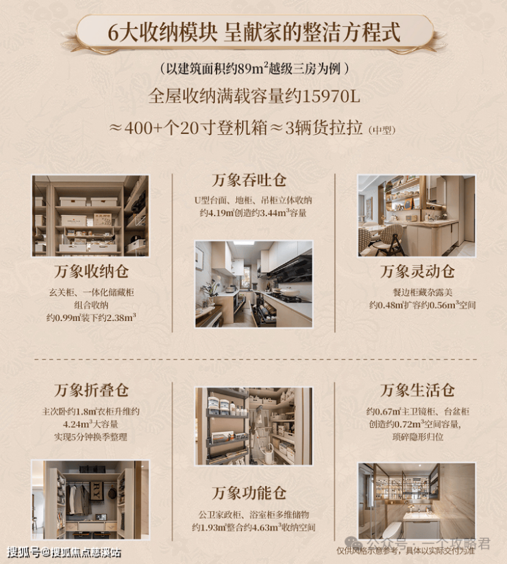 以89平为例,约4.5m³独立储藏间,全屋收纳更是达到了16m³,相当于三只成年大象的体积。