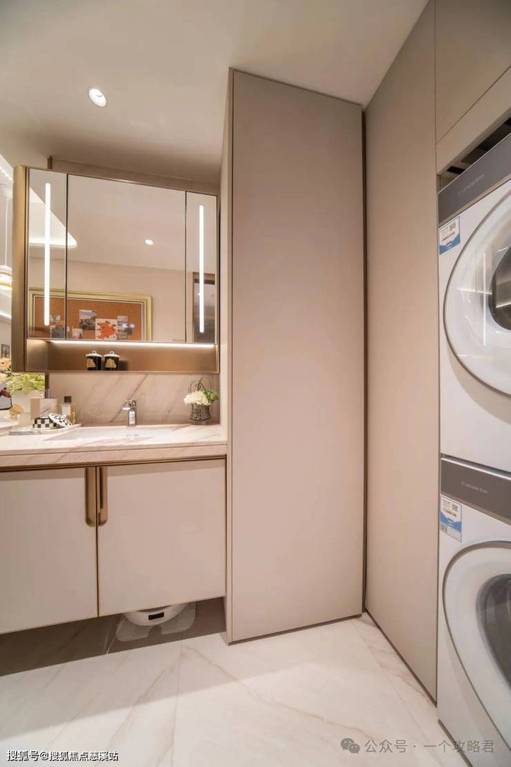 公卫变身「家务永动机」,洗烘区与淋浴间玻璃相隔——宝宝澡盆里扑水花,滚筒同步转出干净衣物,妈妈站着洗澡的 10 分钟,家务进度条已自动加载 50%。