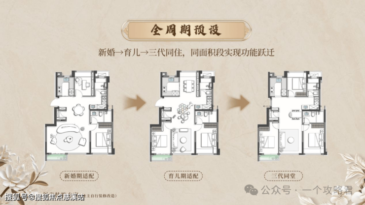 【新婚二人期】可将邻厅次卧改为阔绰宽厅,满足二人世界、会客接待、居家健身、办公等功能。