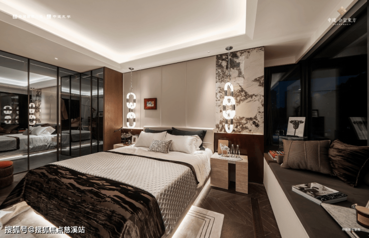 中建·合玺东方深度洞察河西高净值人群的需求,在建面约190㎡户型中提供三房、四房可选方案。『鎏光』样板,正是基于三房格局的概念呈现。