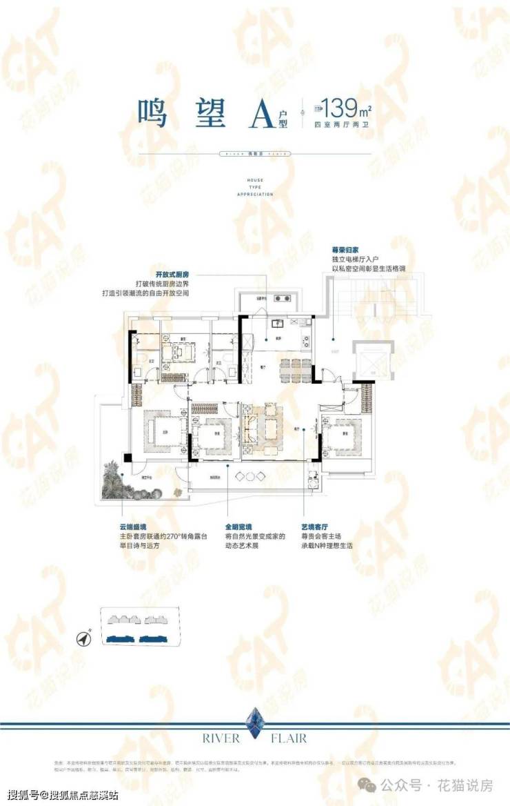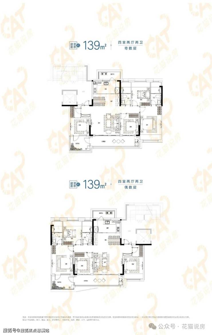 下图是139㎡边户户型,四室两厅两卫设计,被业内称为江核139㎡户型的标杆之作。