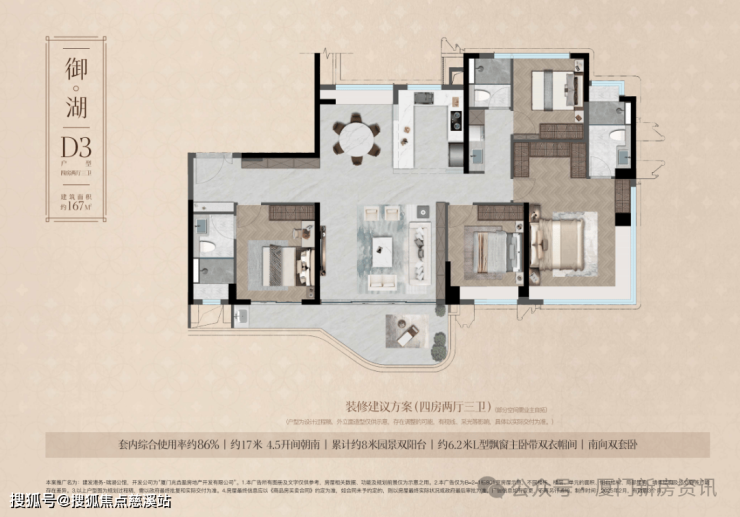 建面约167㎡四房两厅三卫:人生越阶尊邸