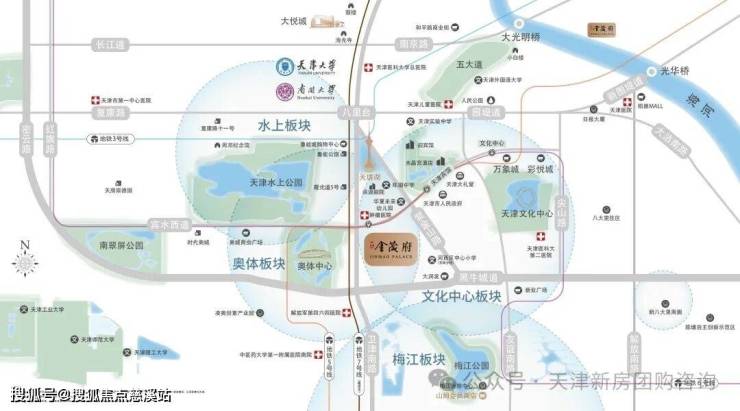 河西腹地,天塔之荫,卫津路与宾水道双中轴核芯交汇处,以项目为圆心,约3KM半径内汇集水上一奥体一天塔一文化中心!