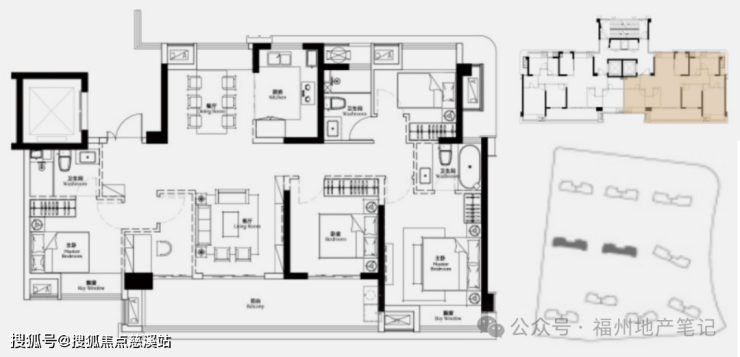 项目规划全四房户型,均为T2,看产品设计,所有户型: