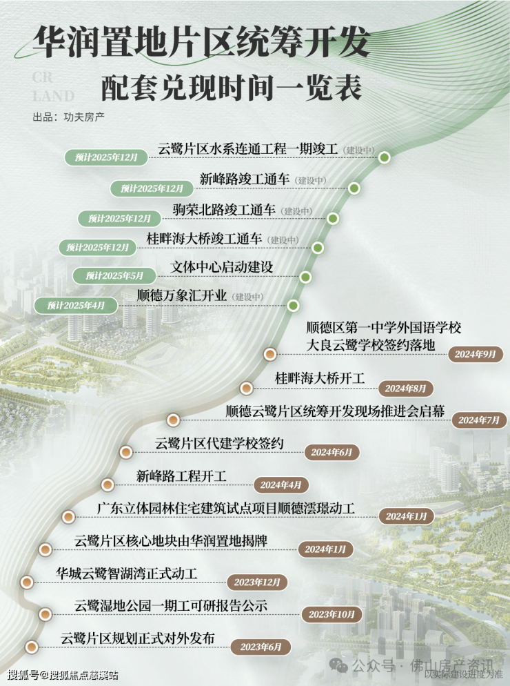 3️⃣教育:顺德一中外国语学校大良云鹭校区(华润代建,公立小学+初中;预计2027年6月交付)、顺德机关幼儿园(华润配建,18班,又名华辰幼儿园;预计2025年9月开园)