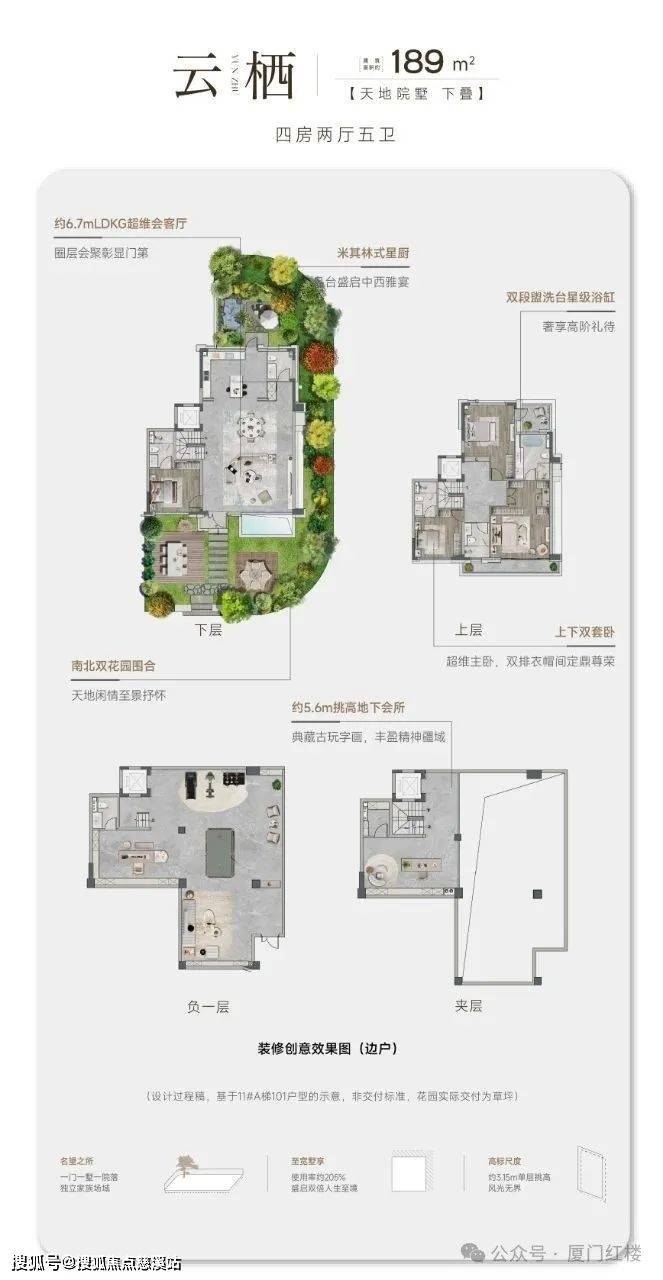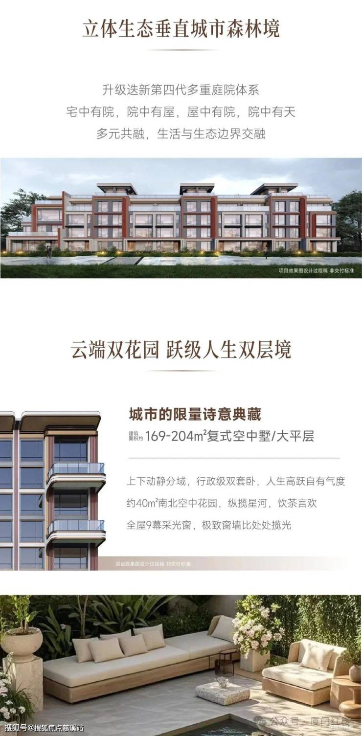 1.5低密居址,约4.19万m立体生态住境,融合超前第四代住宅理念,一座更懂鹭岛的新世代宅,四代小高层、复式空中墅、大平层、天地院墅,重构厝埕共生的当代闽南世家。