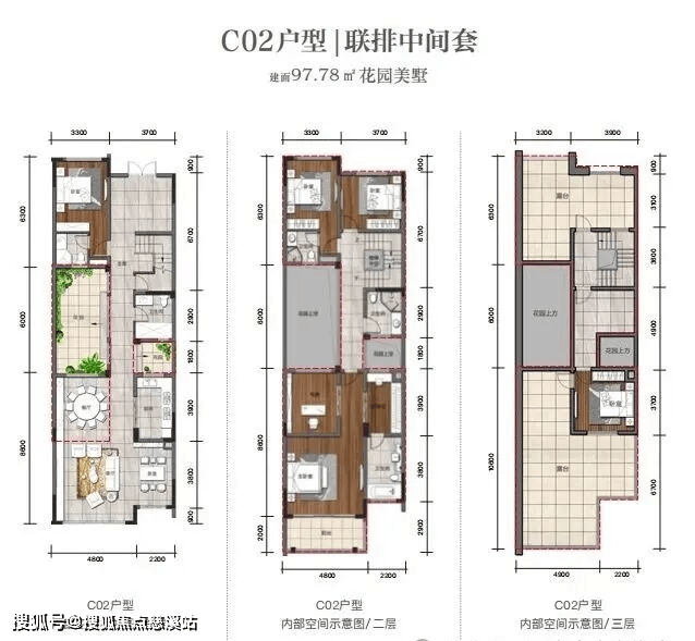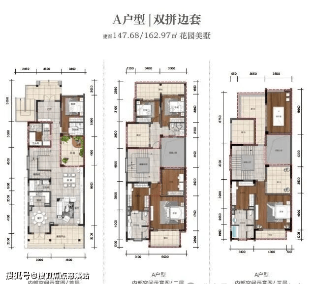 联排/双拼边套:C01户型126.78㎡/129.2㎡