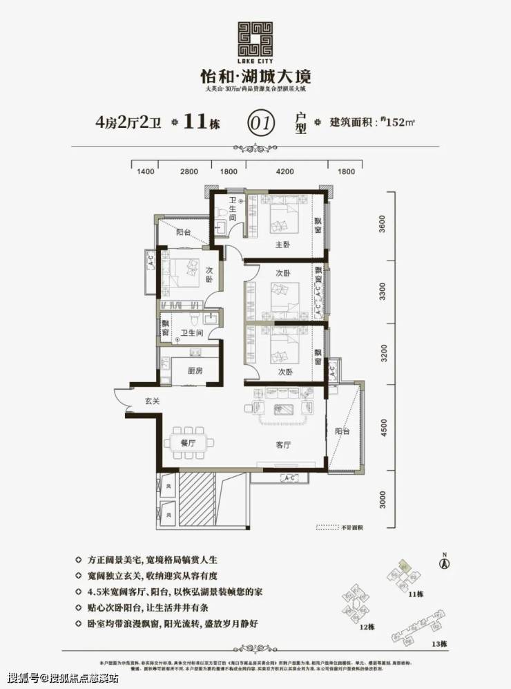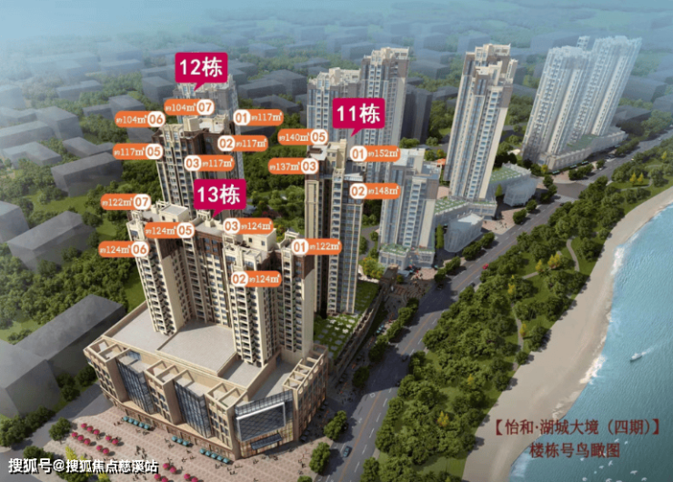 目前项目主推四期的11#楼,据说是四期的压轴之作,号称 “瞰湖楼王”,“湖景”就是它的一大亮点,它的主力户型在137-152㎡,都是大户型。