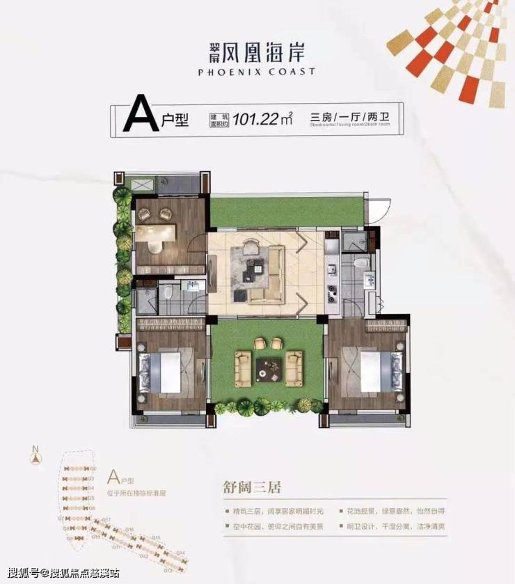 在售产品:A/B户型(标准层),面积约101㎡三房两厅两卫