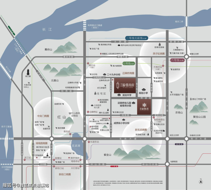 城心稀贵基址,天赋山水脉络,臻藏繁华与繁花的风景,仅供少数人专享。入境主城玄武之上,坐享万谷慧生活广场、招商花园城、在建中的万象天地与宝龙城市综合体,星河COCOCITY、盒马鲜生、沃尔玛等丰盛配套,以地铁1号线及在建的1号线北延线、6号线、7号线共同围合出便捷的出行方式。同时,毗邻迈皋桥幼儿园瑜憬湾分园、南临规划初中,东靠规划小学,以优质资源实现出家门即校门的便捷教育模式。