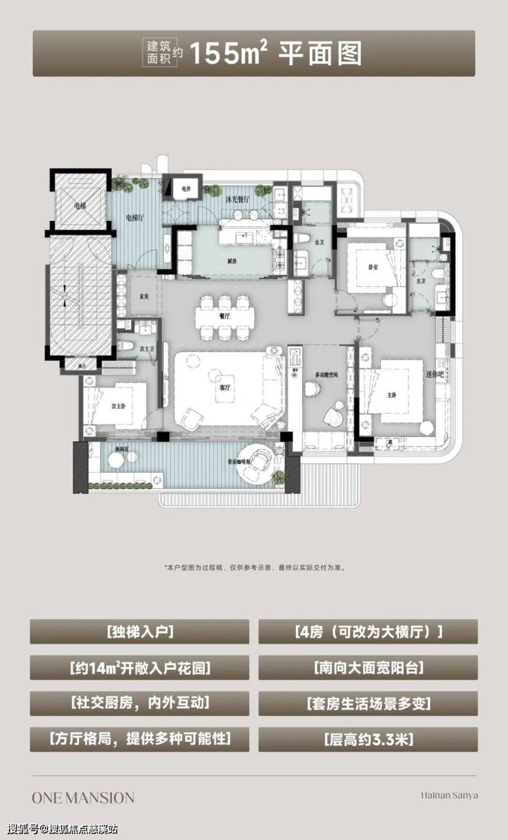 中粮·三亚悦玺壹号,以中粮集团“好房子”营造体系为导向以「全维需求响应者」的姿态,择址三亚主城芯,精心打造1.5容积率、7层森系低密洋房社区,以“第四代高定森系洋房’之姿重塑居住标杆,仅260席敬献三亚塔尖精英。