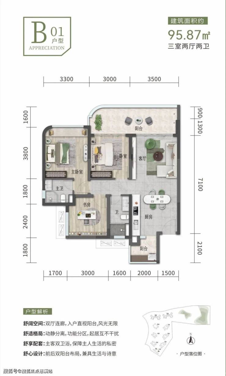 建筑面积 约95.87㎡/97.11㎡ 3室2厅2卫