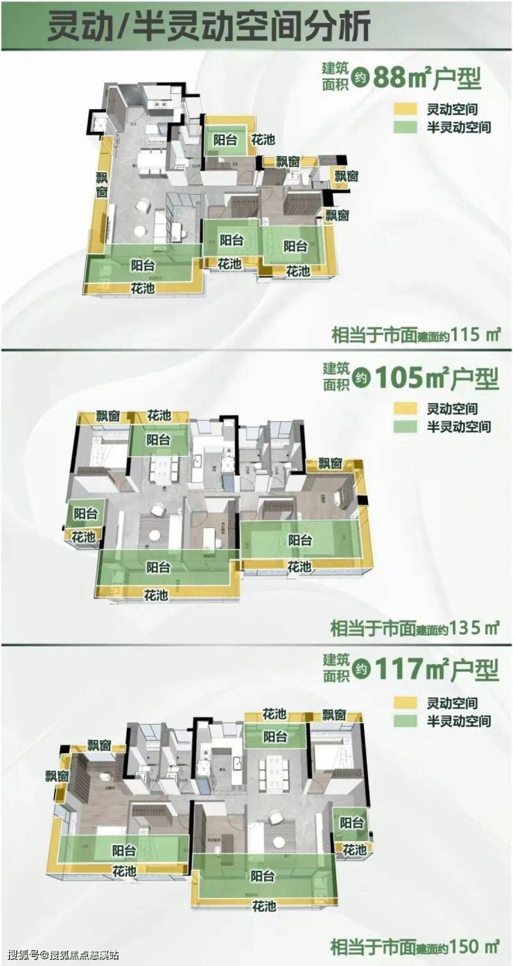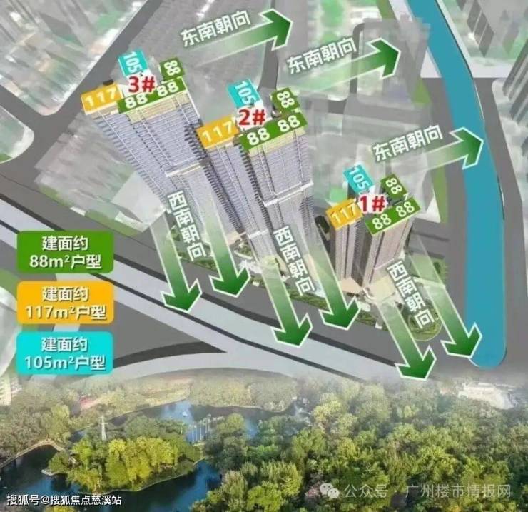 全新3栋已上新,主推建面约88-105-117㎡四房,88平三房共有3条梯腿,有东南向和西南向,105平和117平各有1条梯腿,105为东南,117是西南。