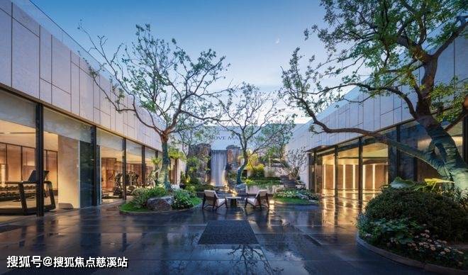 横向约160m景观中轴之上,双下沉式庭院、三重叠水景观