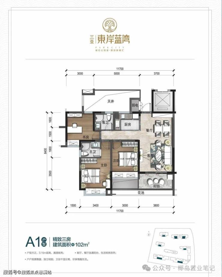 ▼A1户型: 102㎡ 精致三房