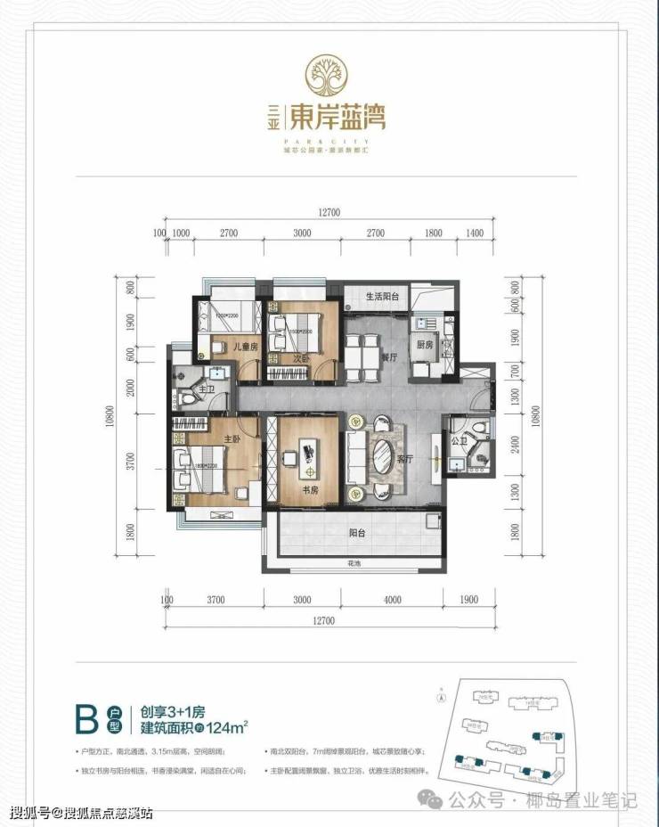 🏠124㎡|3+1房2厅2卫