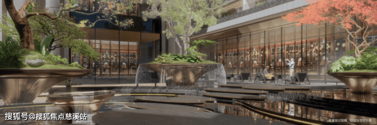 ◎约12.5米镜水飞瀑,悬浮森境园林,营造出立体自然景观;