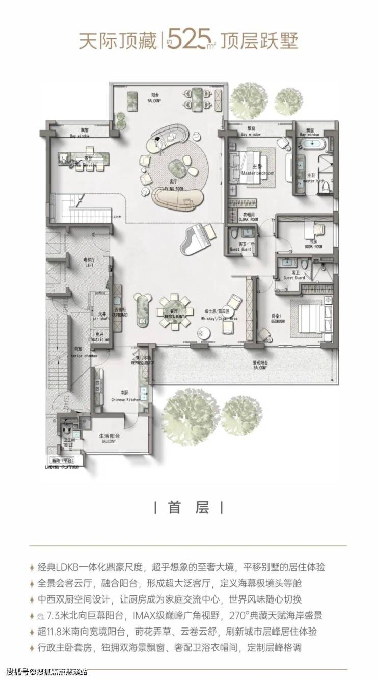 产品面积 约325-525㎡ 统一户型段,纯大平层